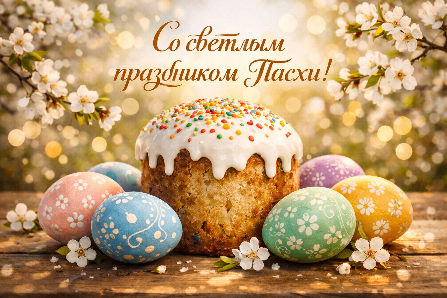Мы искренне благодарим вас за наше сотрудничество, за профессионализм и доверие, которые связывают нас. Желаем, чтобы этот светлый праздник принес в ваши дома мир и согласие. Пусть пасхальный свет согревает ваши сердца, дарит спокойствие и уверенность в завтрашнем дне.